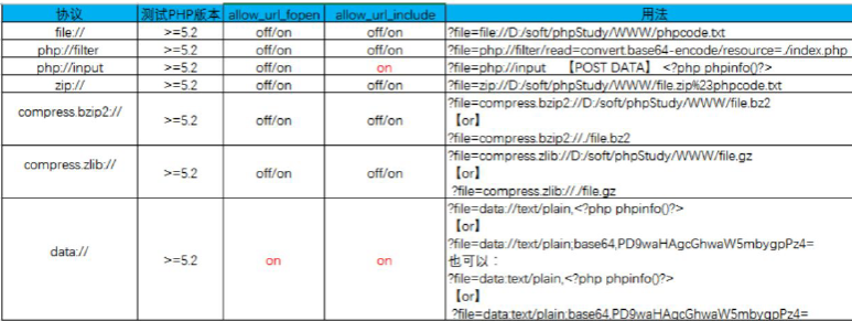 - 用于访问本地文件系统中的文件。在文件包含漏洞攻击中,攻击者可能尝试使用这个协议来包含恶意文件。