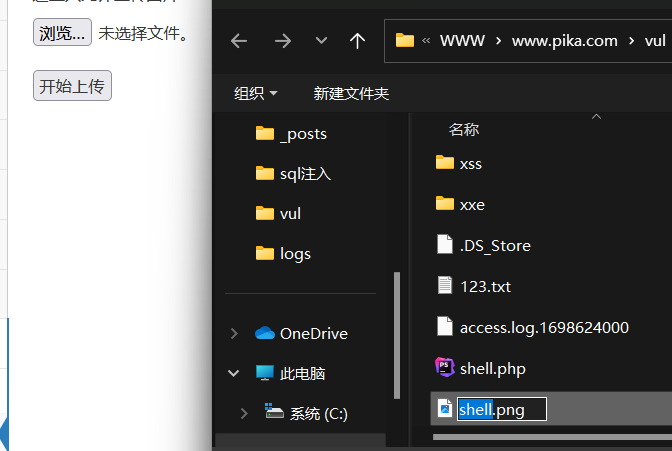 文件上传一个 txt 文本或者图片里面添加一句话木马